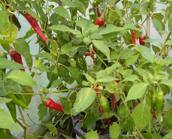 Both sweet peppers and chilli peppers need a long growing season and so it is best to start them early in a propagator which has a temperature of 25 – 30 degrees C. I start mine at the end of January, but anytime in February should be OK, however early March is the latest really to get a good crop. Make sure that the propagator is not in direct sunlight as this can affect the temperature greatly. Grow lights can be really helpful to keep the seedlings stocky. Once they have germinated then prick them out into modules or small pots to grow on. Don’t overpot them as the plants seem to like a slightly restricted growing environment for their roots, but you may need to pot them on once during the growing on period. You can grow them on at a lower temperature, but keep them warm or they will sulk. Keep them warm till mid to late April when the greenhouse temperatures should be warm enough but if your conditions are chilly at night then take measures to protect them by bringing them back in the house overnight. By May you should be able to plant them in a larger pot or in a greenhouse bed. Keep the plants fed on a weekly basis – I use homemade comfrey feed but seaweed feed is also good.