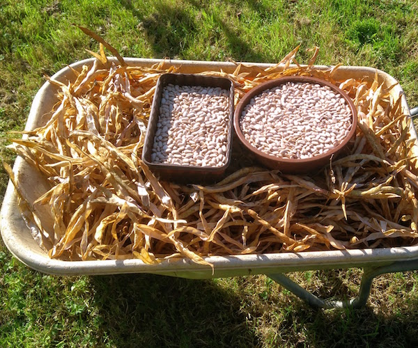 Because drying beans take longer to fully mature on the plant, they’re best started off early, indoors in April. Sow them in modules with some seed compost and if there are mice around, cover them up before they germinate, as rodents love the seeds. Harden off the young seedlings, then plant them out about 6-8” apart once all risk of frost has passed and he soil is warming up. Dig in plenty of organic matter initially, and water regularly throughout the season. The beans will need a structure with canes or string to wind themselves around as they climb. Most will find their own way up, but if any get a bit ‘lost’ you can simply wind them up yourself to begin with. Make sure you wind them anti-clockwise though, otherwise they’ll just unwind themselves!